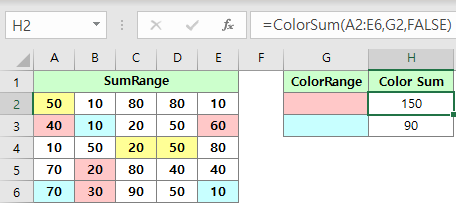 - =ColorSum(sumRange, colorRange, [colorType])